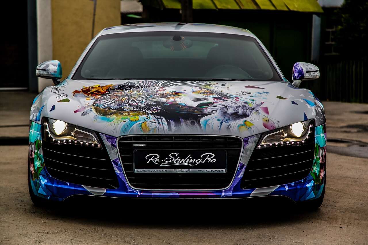Буквально на глазах движущаяся машина хамелеон меняет оттенки. Они плавно перетекают один в другой по мере изменения угла зрения. Это становится возможным из-за нескольких уровней пигмента при покраске или оклейке специальной пленкой.