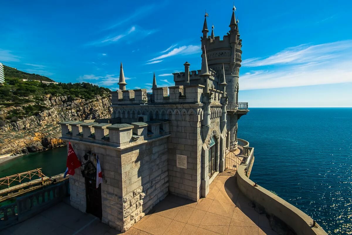Ялту по праву называют Крымской Ривьерой из-за живописных окрестностей и мягкого климата. Поэтому возле Ялты построено много дворцов – резиденций русских царей и дворян. Символом Крыма считается дворец Ласточкино гнездо.