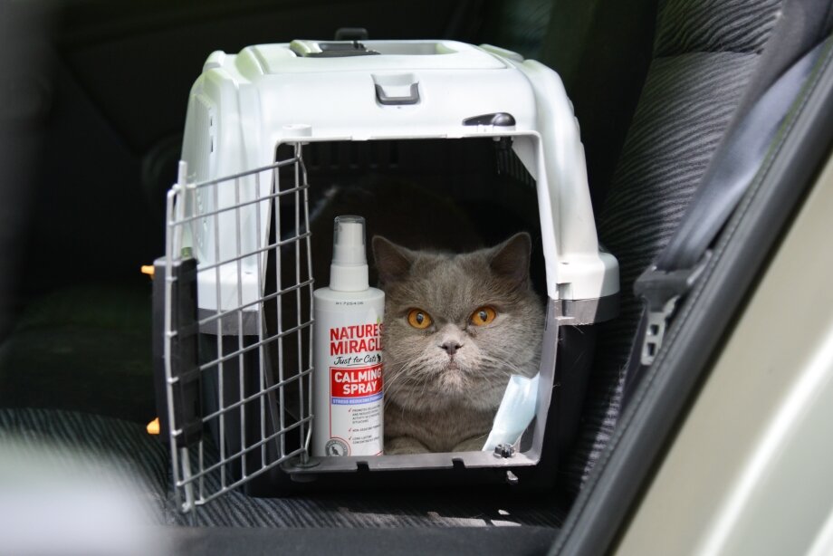 - В день поездки распылите кошачий феромон в переноску для кошек.