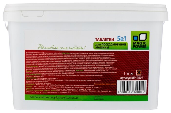 Моющее средство для посудомоечных машин, с другой стороны, более концентрированное и не имеет пузырьков, что означает отсутствие переполнения посудомоечных машин. Формула содержит комбинацию чистящих средств, некоторые из которых начинают действовать сразу после начала загрузки, а другие постепенно активируются во время стирки.