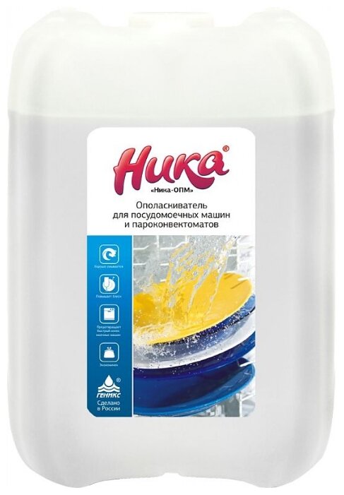 Также дополнительно необходимо использовать ополаскиватель — специальное жидкое моющее средство, предотвращающее образование мыльных разводов на посуде. Применение ополаскивателей необходимо в случае, если выбранный очиститель не справляется с задачей полоскания посуды, а по окончании мытья остается немного моющего средства или разводы на стекле.