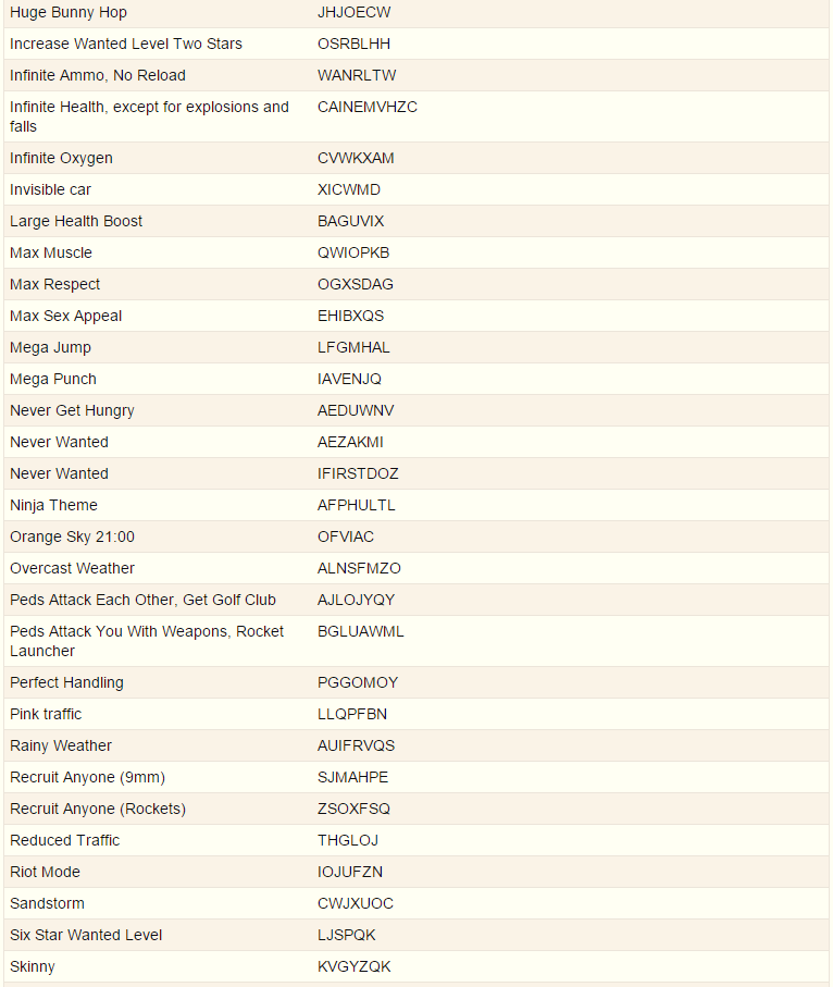 Читы: Beach Theme (меняет одежду CJ, пешеходную одежду и трафик)