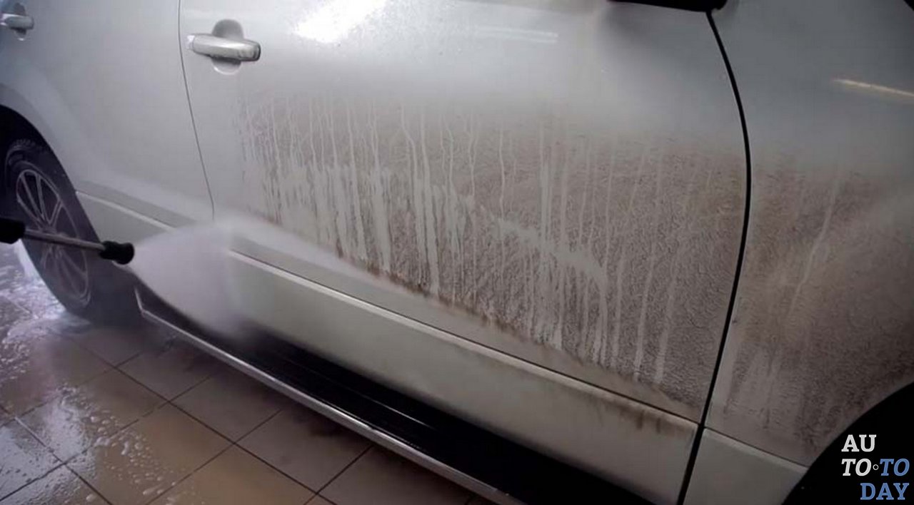 Высыхая, данная смесь, образовывает налет, который можно увидеть, если посмотреть на автомобиль при солнечном свете.