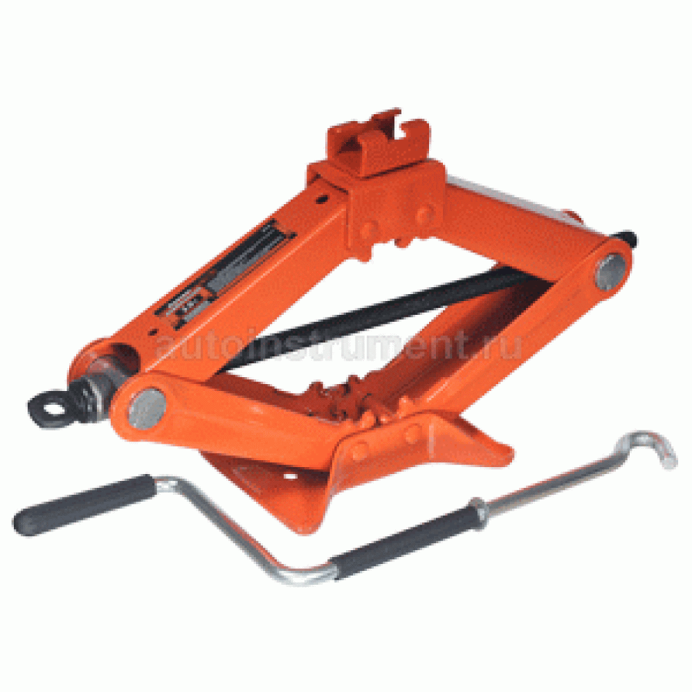 Это старомодный ножничный домкрат, который является самым дешевым и самым маленьким вариантом из имеющихся.У него есть ручка, с помощью которой можно раздвинуть руки и приподнять машину.