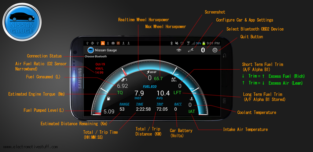 Софт даёт возможность самостоятельно сбросить ошибку двигателя (Check), контролировать расход горючего, сравнивать реальные параметры с заявленными автопроизводителем, учитывать расходы на АЗС и пр.