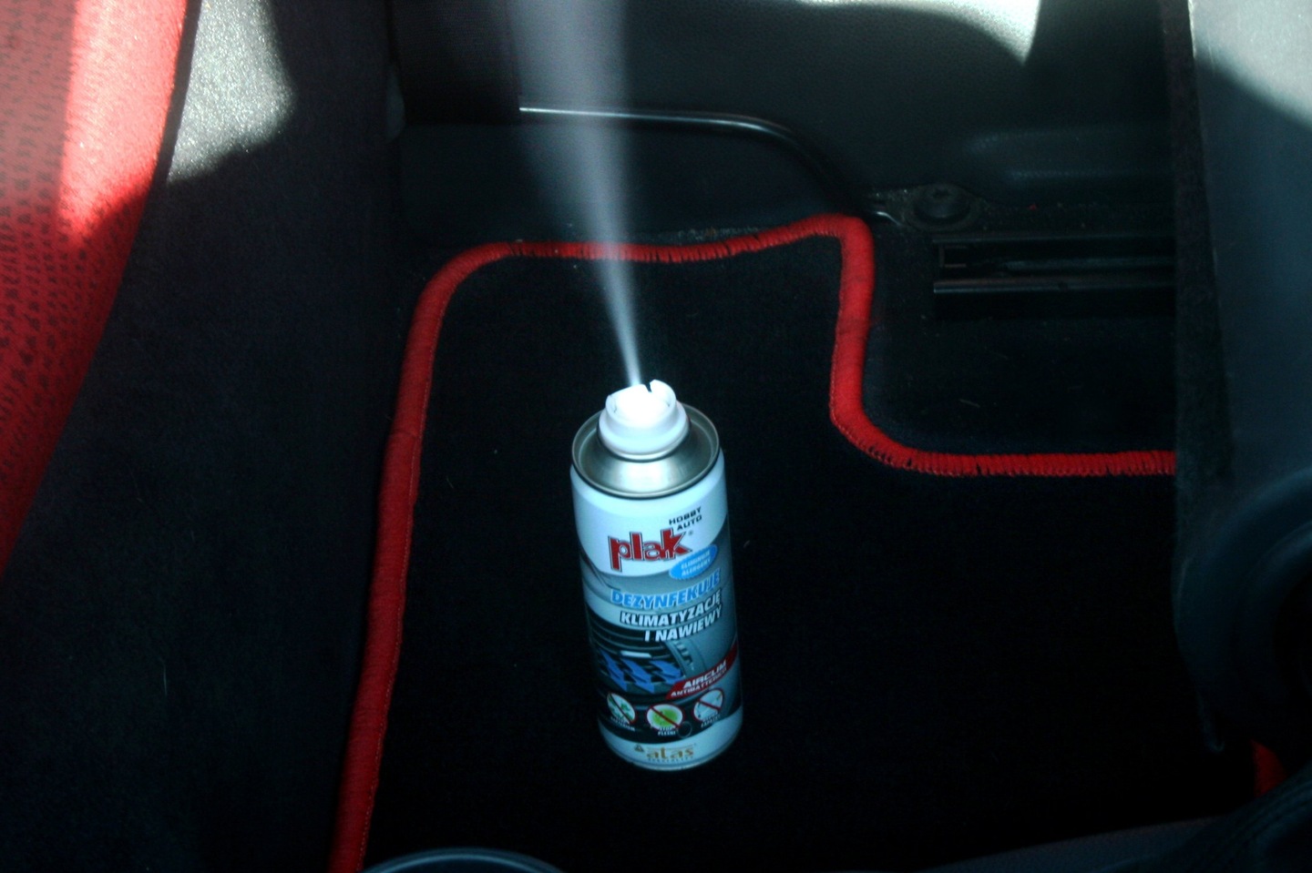 • снять салонный фильтр и распылить 2/3 средства на испаритель, а оставшуюся часть в воздушные каналы.