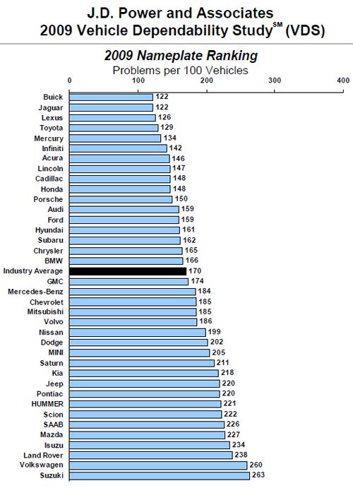 Рейтинг основан на опросе более чем 84 тысяч американских владельцев новых автомобилей. Респондентов попросили ответить на 233 вопроса о неисправностях, которые они обнаружили в своих машинах после 90 дней обладания.
