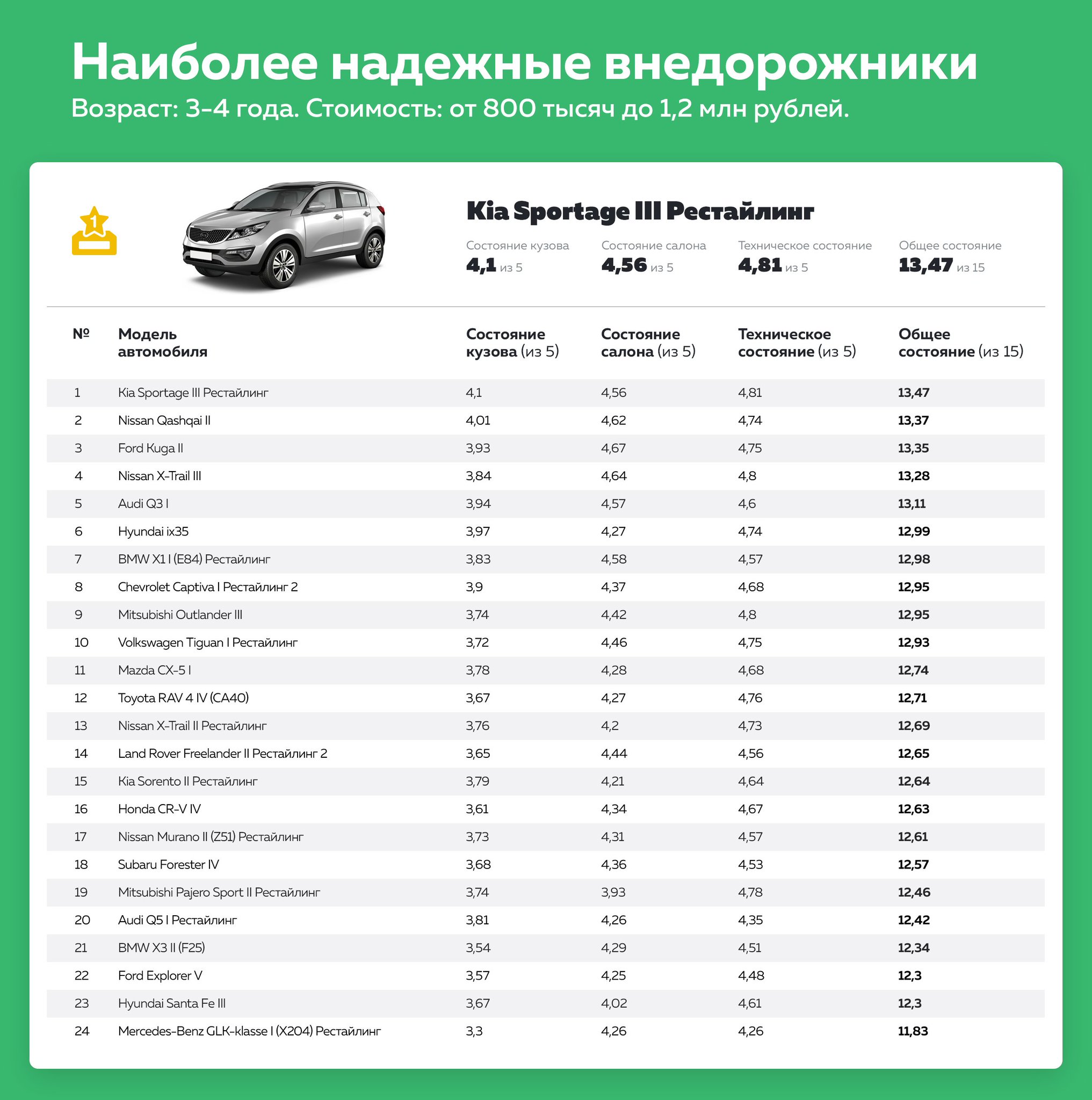 | 4 | Mercedes GLK | 2,6 | 52 |