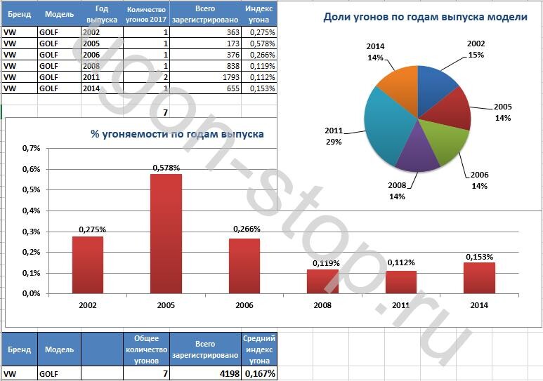 По-прежнему, наибольшее количество краж и угонов автотранспорта совершается в ночное время. Среди лидеров по количеству преступных посягательств отмечены такие автомобили иностранного производства, как Mazda3, Ford Focus, Mitsubishi Lancer, Hyundai Solaris и Kia Rio. Среди автомобилей отечественного производства первой место в таком рейтинге занимает Lada Priora.
