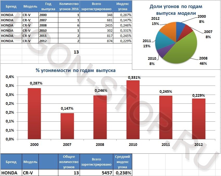 Таким образом, только треть угоняемых у россиян автомобилей застрахована, приходит к выводу эксперт. По его словам, частота угонов застрахованных автомобилей в среднем по рынку составляет 0,16 процента.
