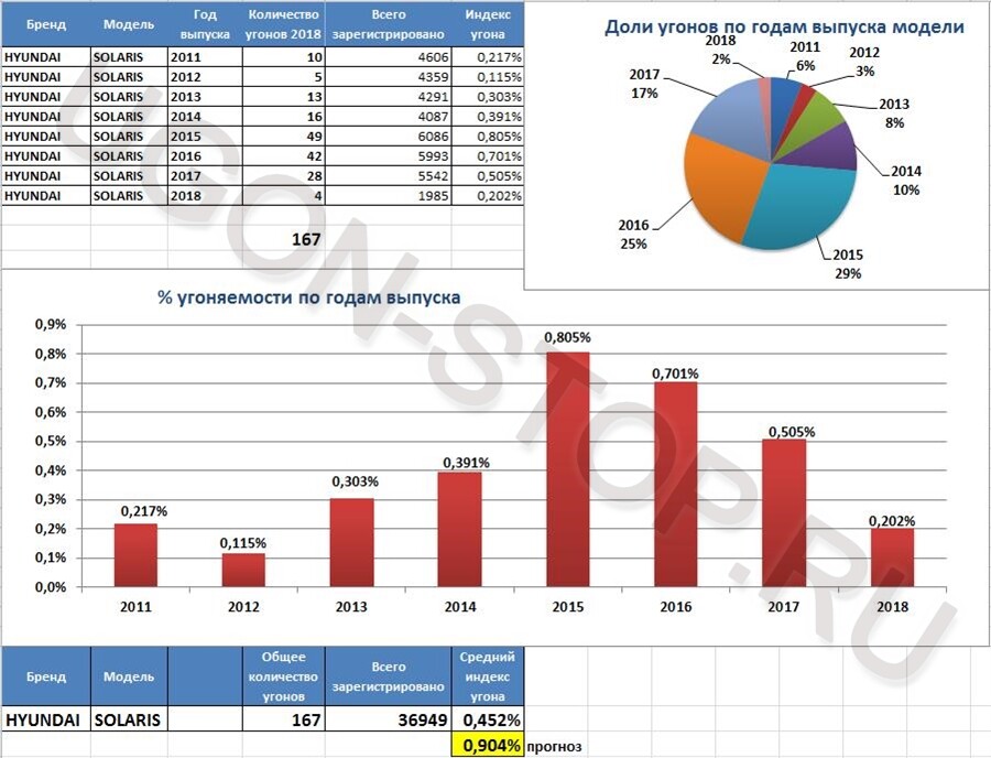 Напомним, что недавно Всероссийский союз страховщиков обнародовал исследование по угонозащищенности машин. Согласно ему штатная комплектация автомобилей Hyundai и Kia плохо противостоит угонам. А так как такие модели этих марок, как Solaris и Rio, очень популярны на нашем рынке, то эти модели занимают первые места по угонам.