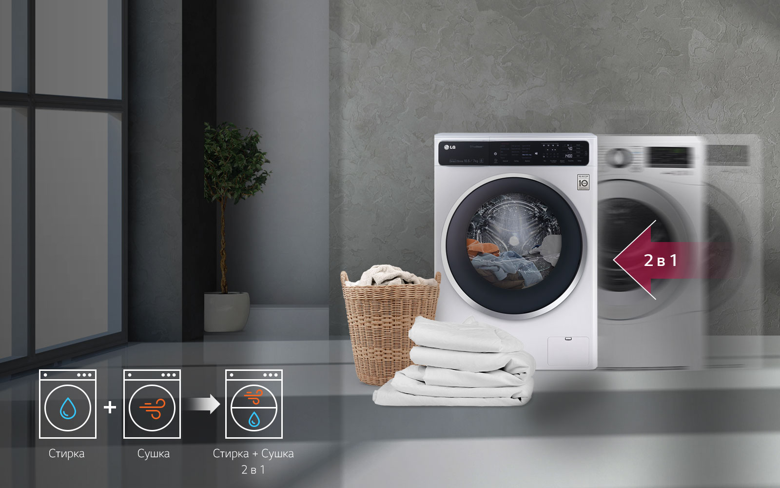 Стирайте белье в одном приборе с помощью многофункциональной стирально-сушильной машины Smart All-In-One.