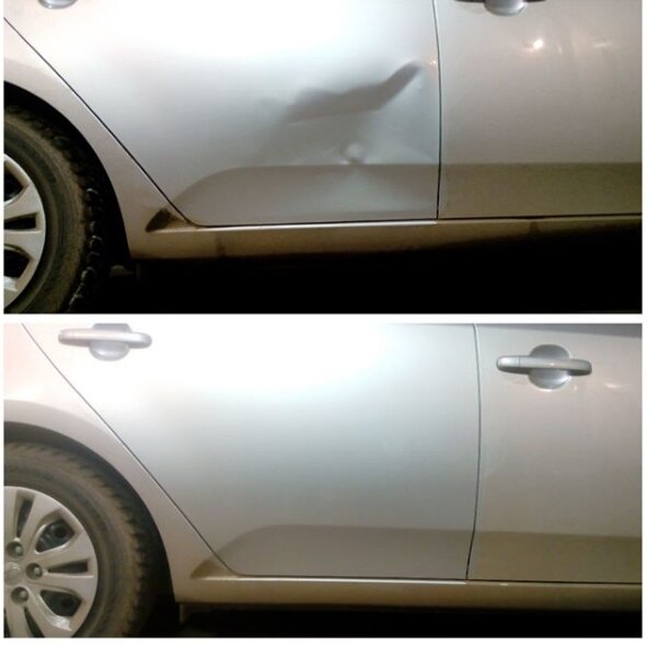 Но это не лучший повод пытаться отремонтировать самостоятельно. Большинство автомастерских предлагают услугу, называемую безкрашенным ремонтом вмятин.
