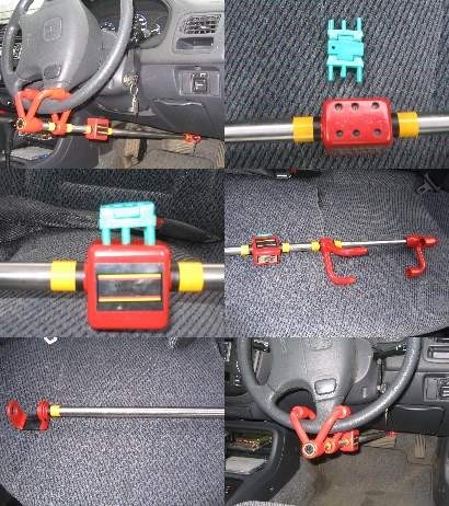 - Замки рулевого колеса: Замок рулевого колеса — это металлическая штанга, предназначенная для предотвращения поворота рулевого колеса.