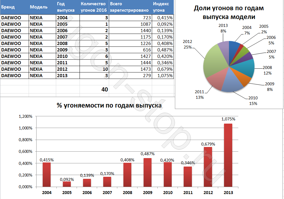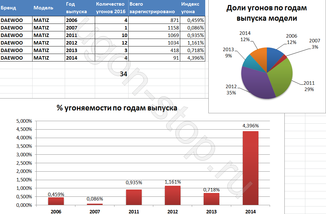 Какие машины чаще всего угоняют, а какие можно считать безопасными? Обратите внимание на следующую таблицу: