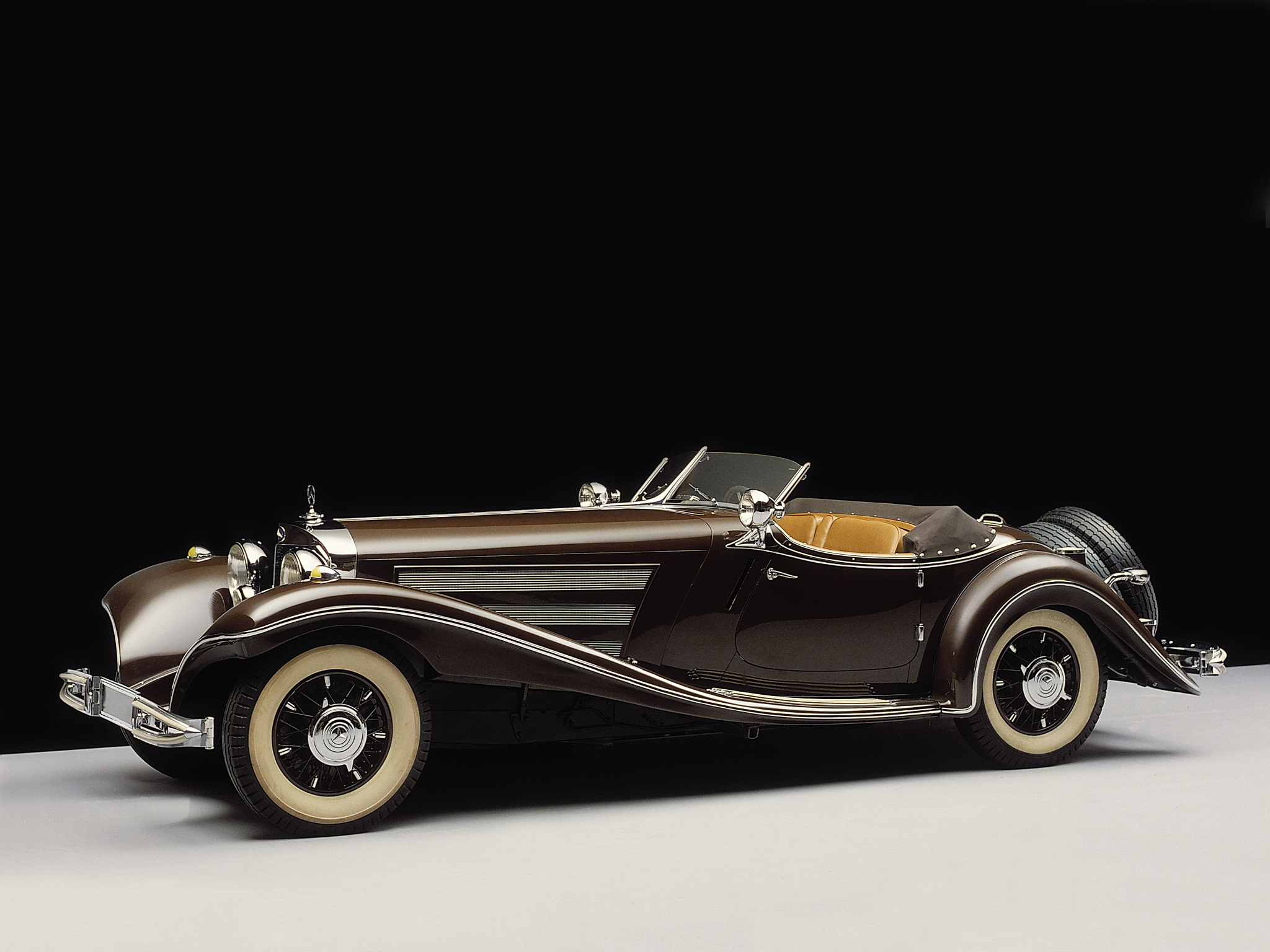 Mercedes-Benz 540K Special Roadster, оснащенный 5.4-литровым восьмицилиндровым двигателем с турбокомпрессором, стал самым быстрым серийным автомобилем своего времени — он развивал скорость до 180 км/ч.