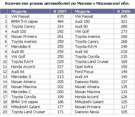 Попробуем ознакомиться с разными рейтингами, чтобы воспроизвести более или менее точную статистику угонов по Москве 2013-2014 годов, и определить какие модели пользуются наибольшей популярностью у воров.