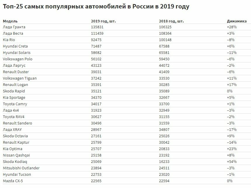 Топ-25 самых популярных автомобилей в России