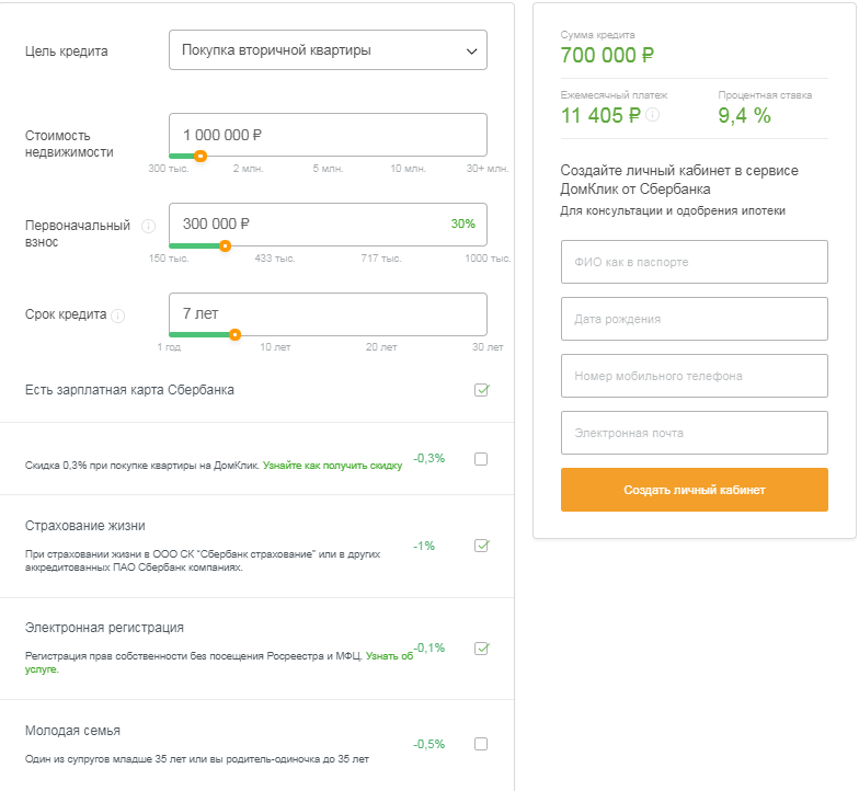 Если продавец недвижимости размещает объявление на портале «ДомКлик» или покупатель находит подходящую ему квартиру на этом портале, он получает скидку по ипотеке в размере 0,3%.