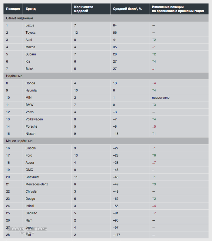 Рейтинг самых надежных авто в 2017